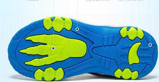 各大商场或网店出售的儿童沙滩鞋的鞋底材质多为复合底,复合底又分为EVA、MD(EVA二次高压成型品)和TPR三种。其中EVA鞋底轻而富有弹性;MD鞋底更耐磨、但高温下易皱;TRP鞋底防滑又轻盈、但不耐磨。沙滩鞋的最基本功能是可以下水,所以防滑是它的第一要求,所以建议大家优先选择含有TPR鞋底的沙滩鞋。