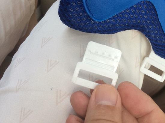 轮滑鞋的内胆不仅要厚实,还要有良好的弹性和记忆效果,这样才能把孩子的双脚牢牢地固定在鞋靴内部,在滑行过程中既不会打滑也比较舒适。 下图中的鞋靴单薄无弹性,边缘坚硬且容易下垂,在滑行过程中没有任何操控性和舒适性可言,甚至还会因为后靴下垂导致芭扣划伤孩子的腿脚。