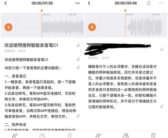 4、支持通过蓝牙与手机APP连接,将录音转为文字,既可以边录边转也可以录制完成后再转换。在室内发音清晰、普通话标准的情况下,转换准确率可以达到95%。